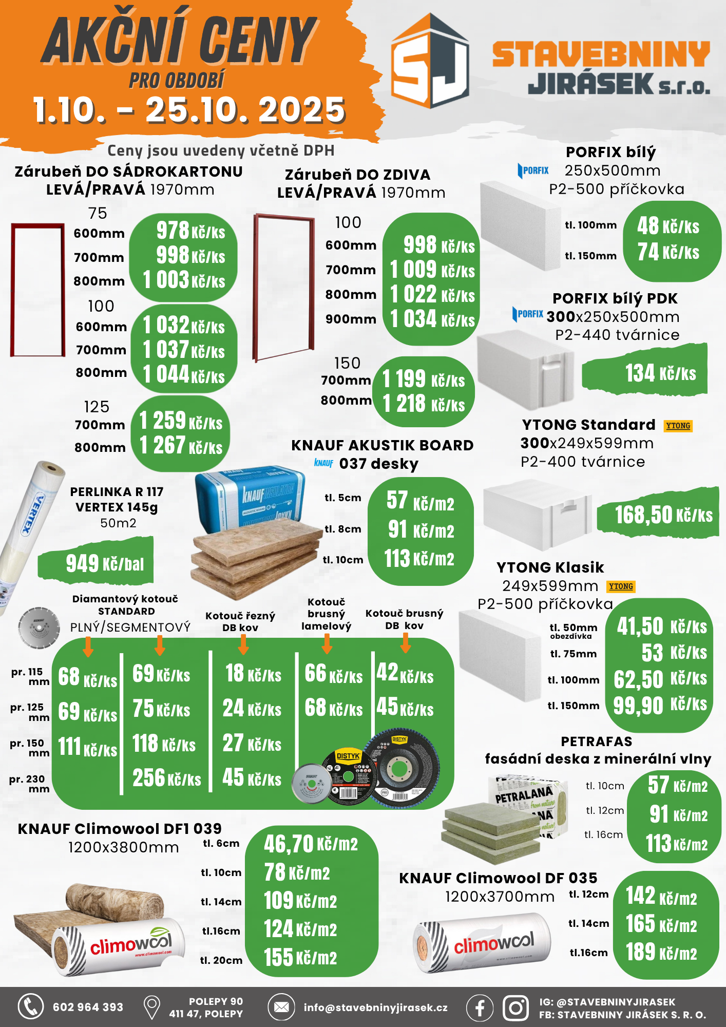 Akční ceny startují 1.10.2025 a potrvají až do soboty 25.10.2025!